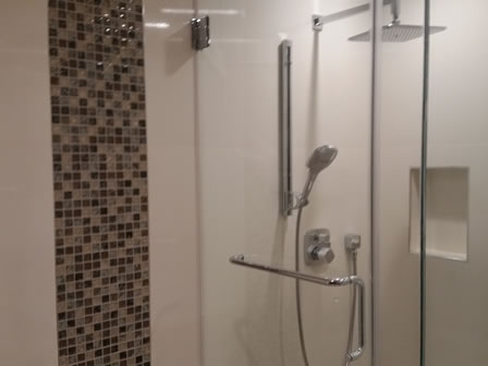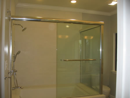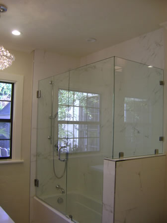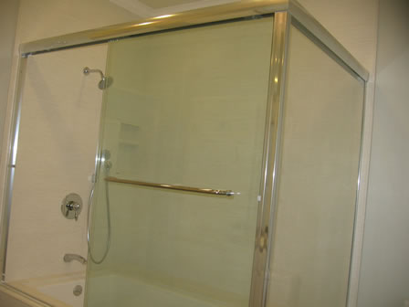 - Conventional or frameless tempered clear-glass shower enclosures;